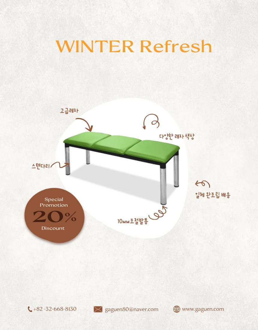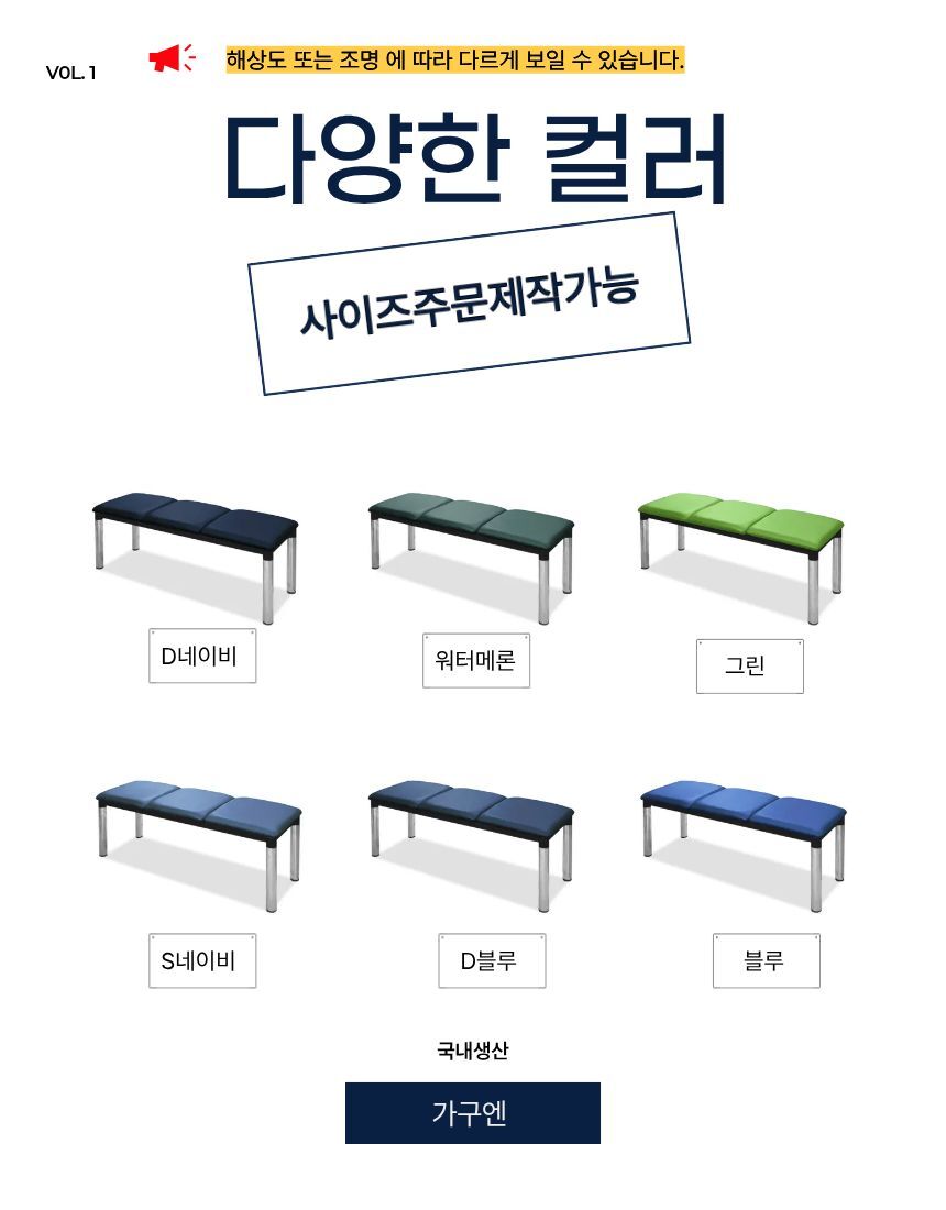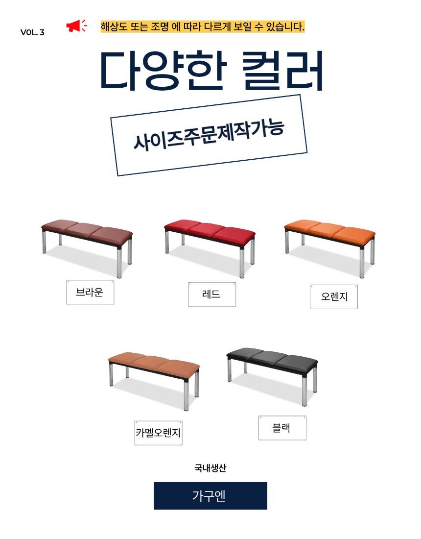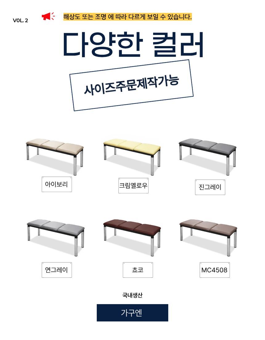 [가구엔] 병원 로비 약국 등무 방석연결 1200 장의자 국산 완조립배송