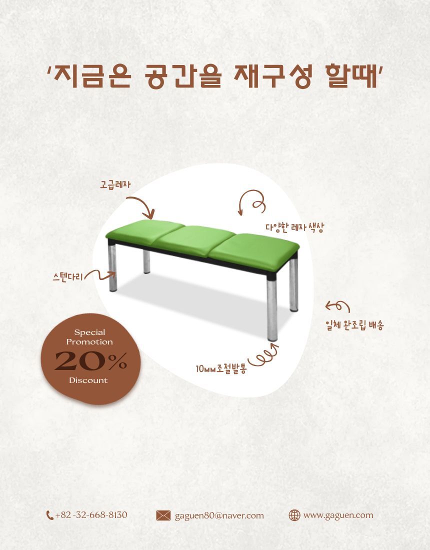 [가구엔] 병원 로비 약국 등무 방석연결 1200 장의자 국산 완조립배송