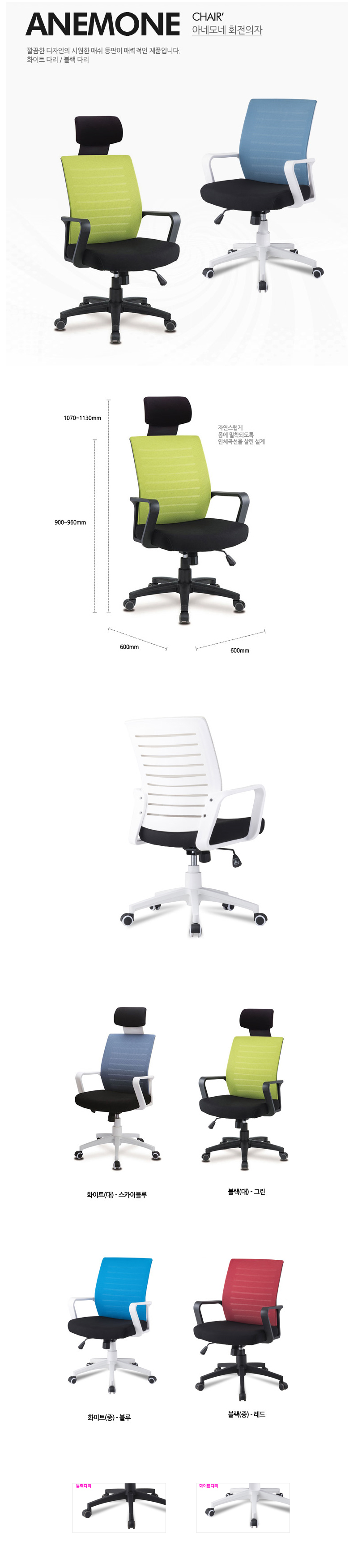 HOME > 의자 > 사무용의자 > 사무실 회의용 직원용 학생 책상의자 아네모네회전의자(대/중)높낮이조절가능